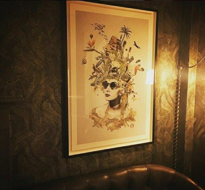 The gorgeous Padstow Townhouse - a boutique hotel nestled within a large, eighteenth century house in Padstow's Old Town - and its Michelin starred restaurant Paul Ainsworth at No.6, now feature two of Rivans' pin-ups: Sugar Queen, a beautiful reworking of Sophia Loren, and Amelia, a twist on the iconic Audrey Hepburn - both of whom look right at home in their new, decadent space (and beside a Tracey Emin, too)!
