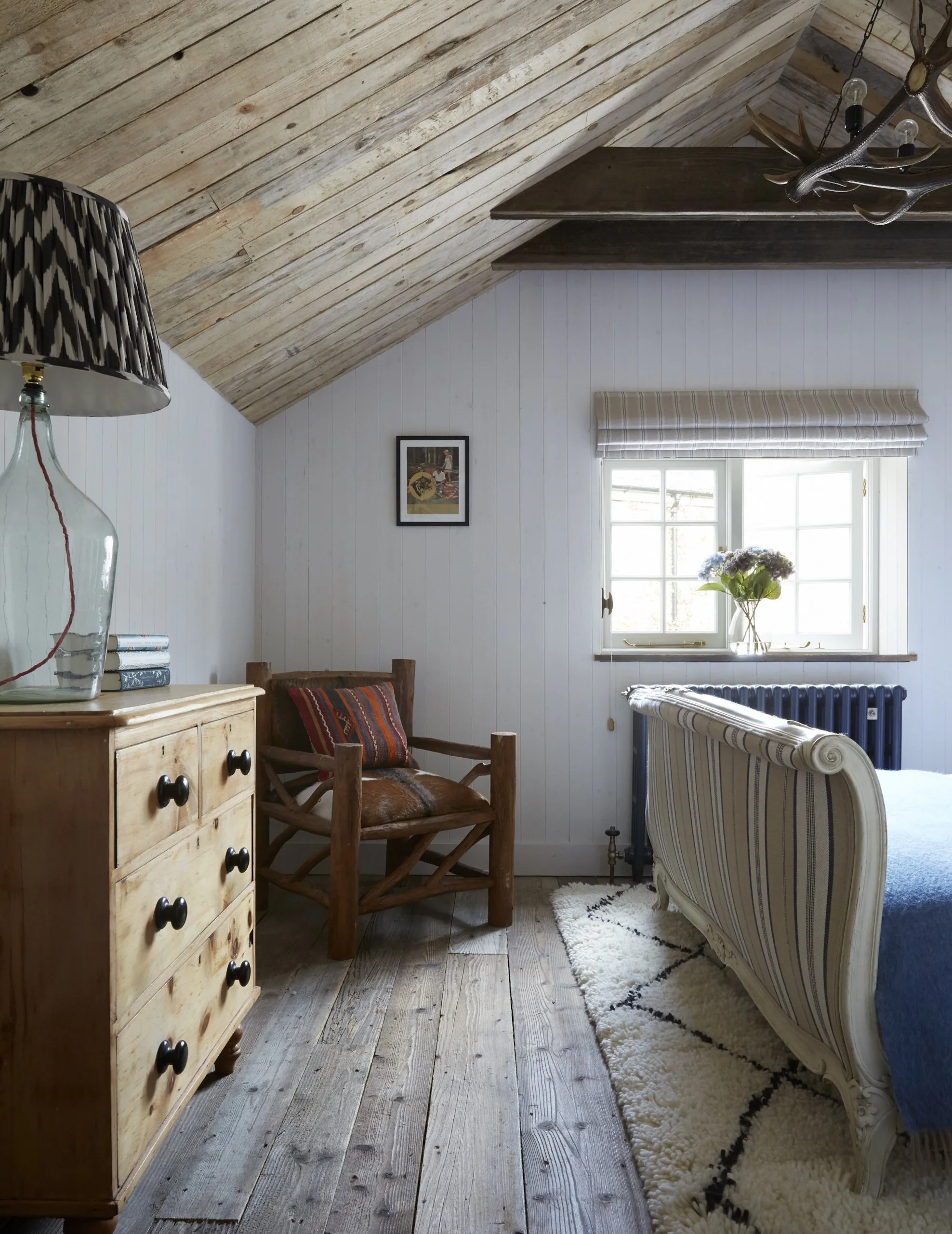 Two of Maria's Original Film Stills - Flora Taking the Limelight (from Danny Kaye) and DIY Tiger - feature in the hotel's cosy cottage space. Set against old, wooden rafters, exposed floorboards, and antique antler chandeliers, Flora Taking the Limelight (from Danny Kaye) and DIY Tiger look right at home in their seaside surroundings, adding a spark of retro charm to these beautiful, rustic interiors.
