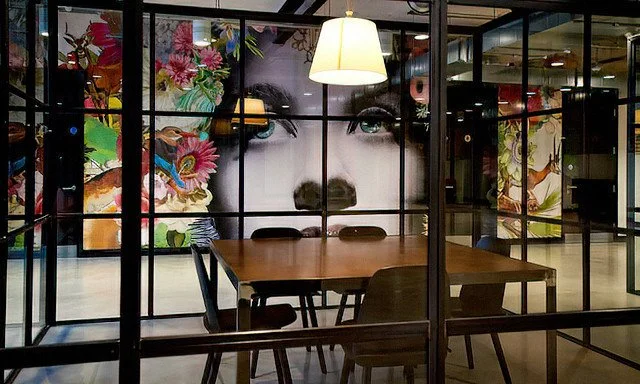 Maria's work has just been featured in a glossy, London office block, where Frieda's face graces the whitewashed walls...